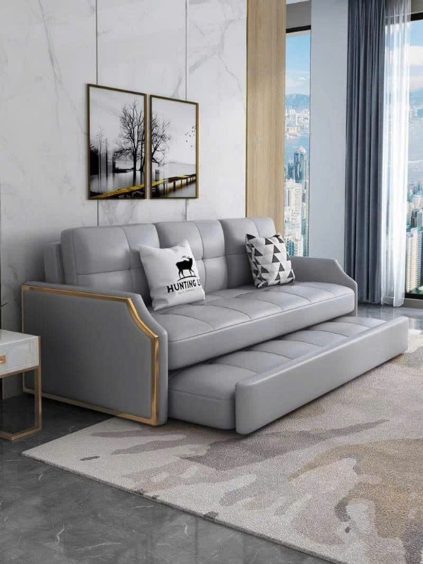 – Với kiểu dáng CHƯA TỪNG CÓ trên thị trường, Sofa giường thông minh hoàn toàn có thể giúp bạn đánh bay hoàn toàn nỗi lo NHÀ CHẬT. Mở ra là giường ngủ, gấp gọn lại trở thành sofa tiếp khách, bạn hoàn toàn có thể linh hoạt biến đổi không gian sống theo ý muốn. Đừng sợ rằng không gian nhỏ bé, chật hẹp thì không bao giờ có thể sang như nhà người ta. Với sofa giường thông minh, thiết kế đẹp mắt gọn gàng cùng với các chi tiết trang trí sẽ giúp không gian của bạn mang hơi thở sang trọng, hiện đại.